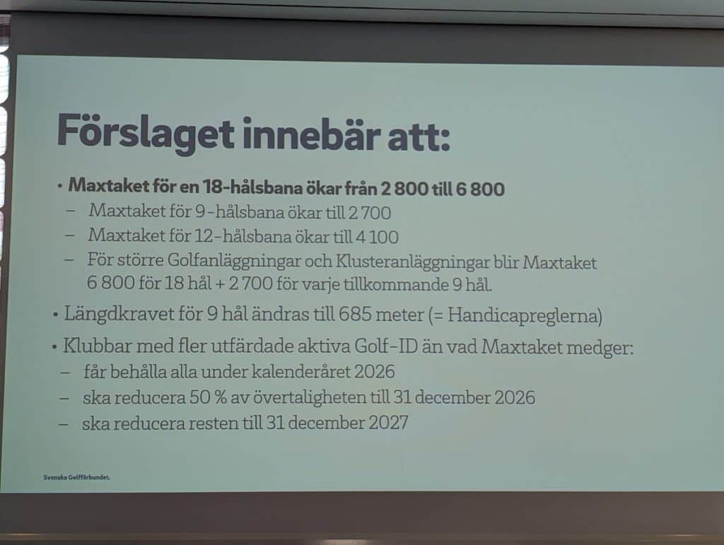 Av det i förbundsarbetet som direkt kan påverka medlemmarna så släpptes under 2025 den uppdaterade golf.se. Konflikten med Sweetspot löstes och konverterades till ett samarbete, vilket gynnar båda parter. Den infekterade frågan om maxtak för klubbarna löstes också, och ett reviderat förslag till maxtak förelades mötet och röstades igenom. Begränsningar i det nya förslaget gör att taket bara träffar tre parter istället för fem som i det gamla, men hur detta skulle undanröja risken att Konkurrensverket angriper det framstår inte som tydligt för undertecknad. I omröstningen så deklarerade både distriktet i Stockholm och Gävleborg att man lägger ner sina röster, vilket skall tolkas som att man vet att förslaget kommer gå igenom men man ville markera sitt ogillande.